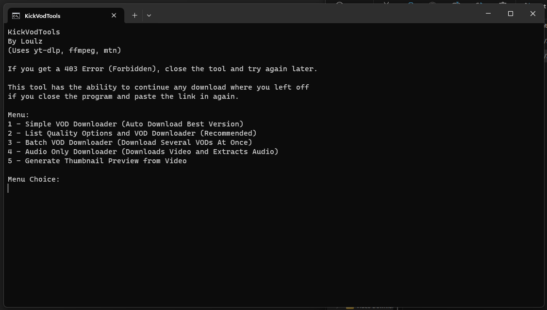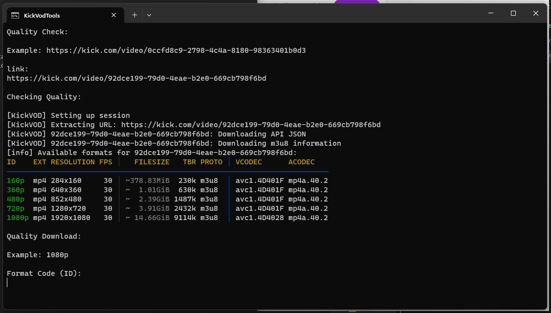 Note: Kick seems to block the tool randomly. If this happens, restart after a few minutes and try again.